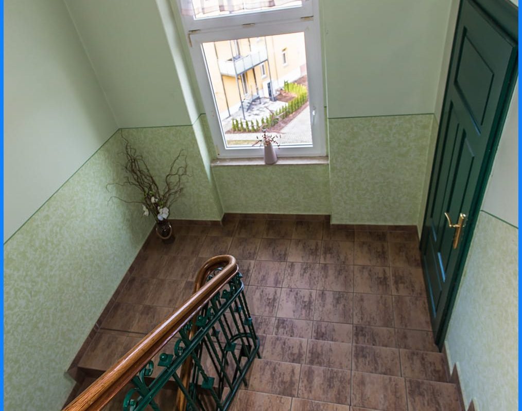 Das Haus erstreckt sich über 5 Etagen und präsentiert sich in einem gepflegten Zustand. Das Treppenhaus ist einschließlich der Stufen bis in das Dachgeschoss gefliest.